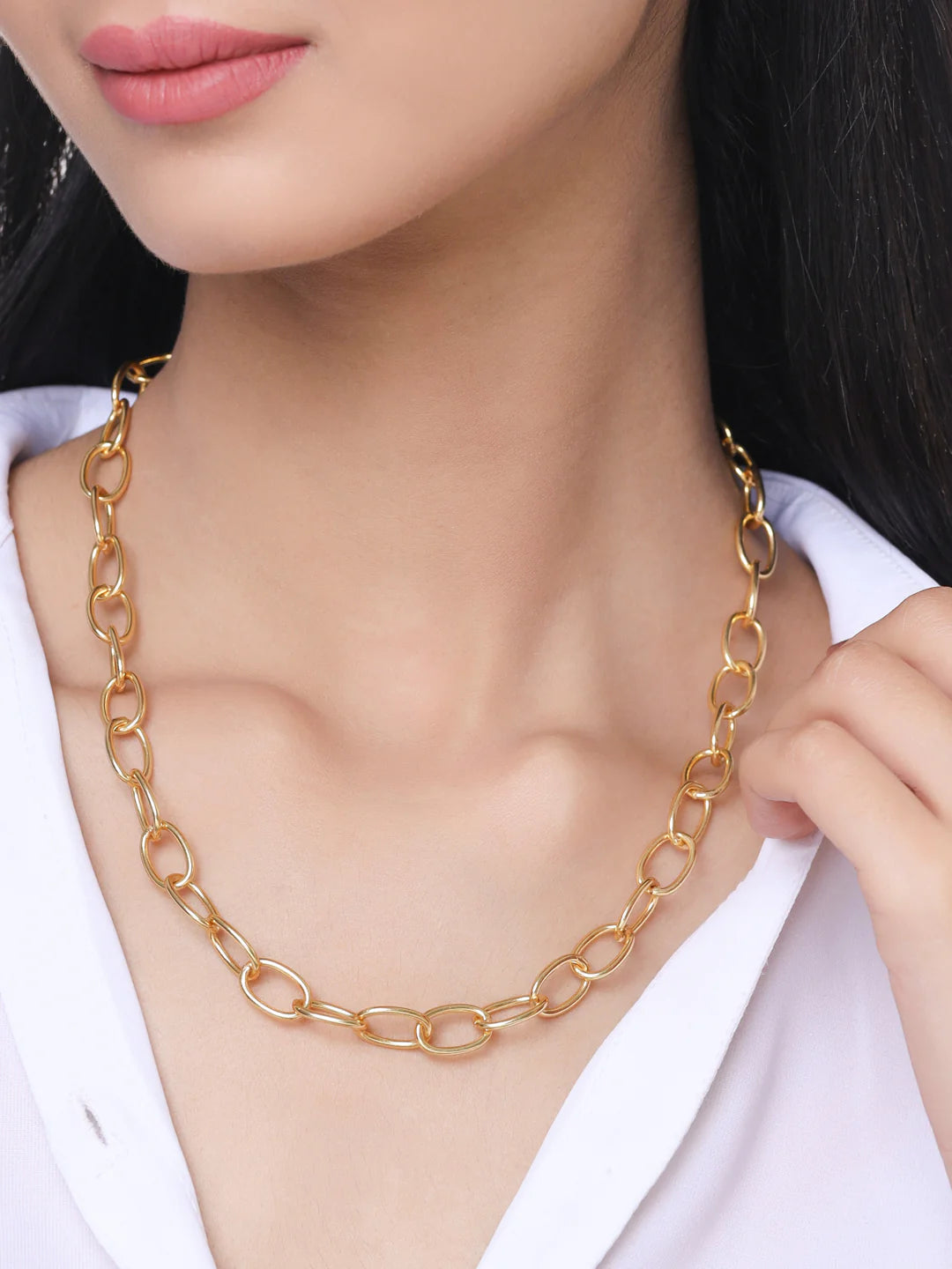 A girl needs her basics. Sneak peak into our Oval Chain Necklace a new member added to the fam!