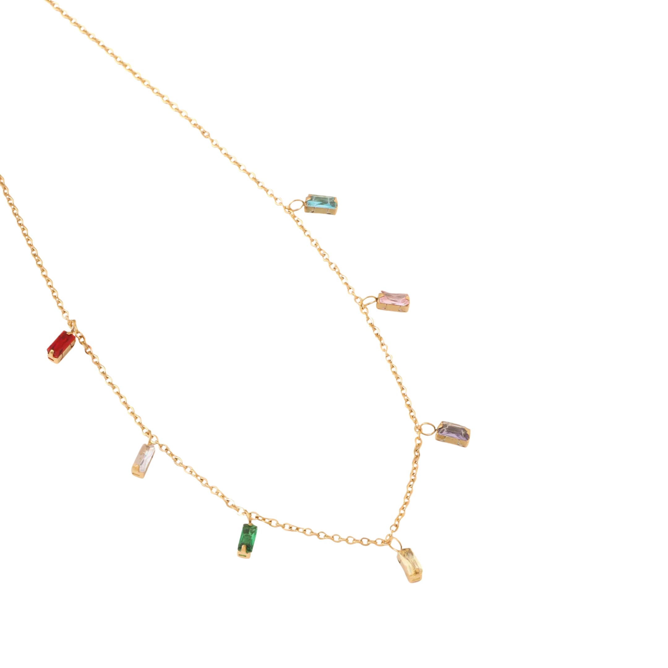 The Galaxy Necklace, a thin gold chain with multicoloured rectangular drops, adds a delicate yet eye-catching touch. Handcrafted, minimalist yet... Read more