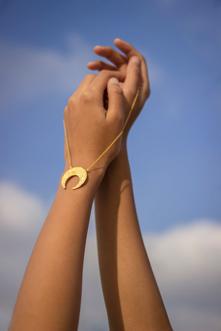 This delicate piece, which is handcrafted from premium brass and plated in radiant 18K gold with an eco-friendly coating, represents protection and good fortune.