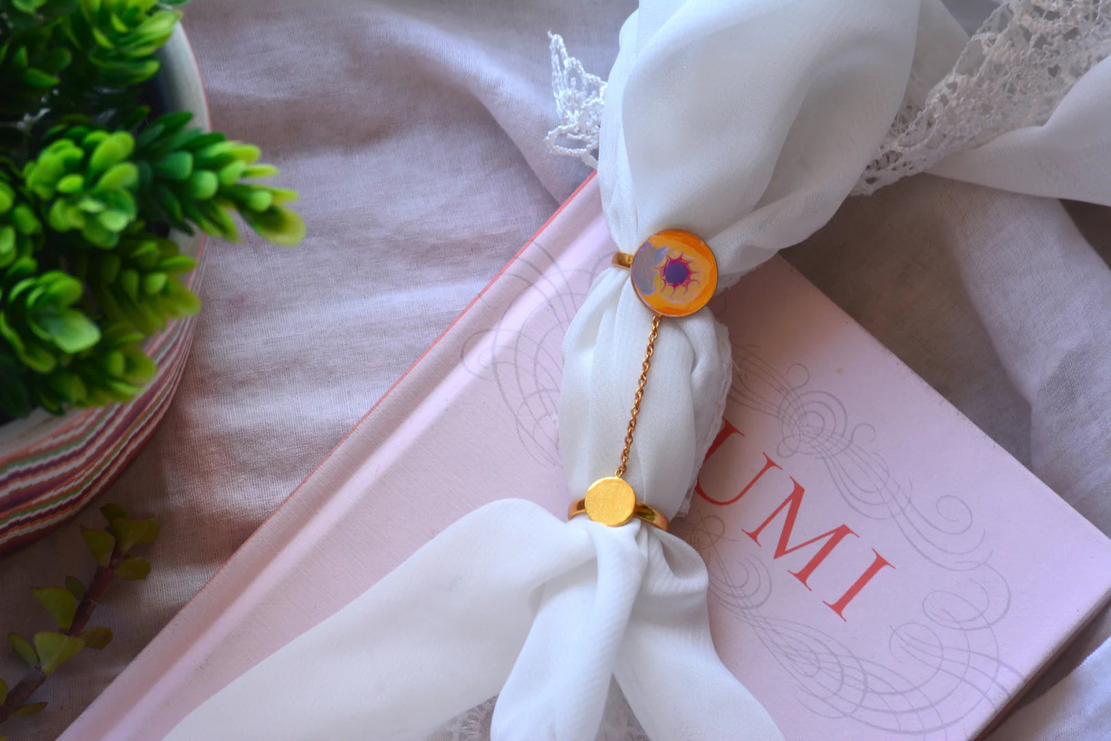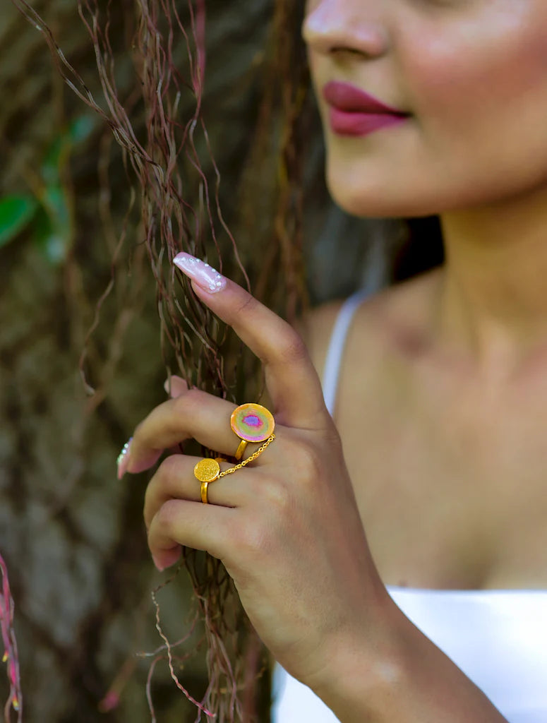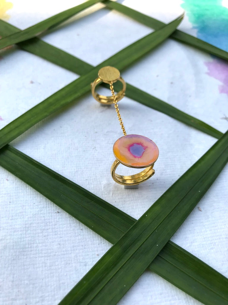 This Jewellery item is an iconic set of midi ring & finger ring, attached together by a dainty chain. Stack it in one finger or wear it as a dual ring.