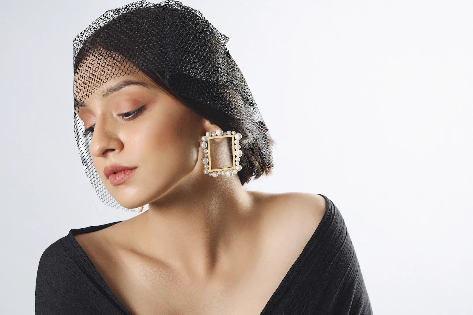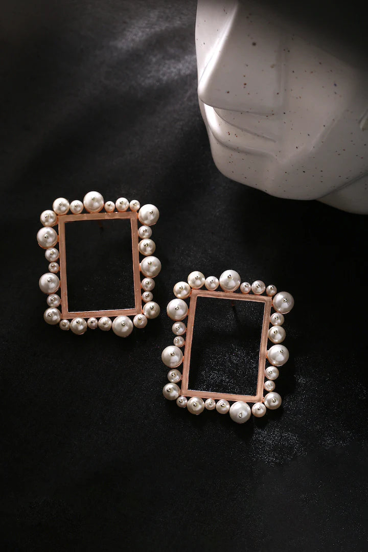 Inspired by the British Era and named after Tessa Margaret, these statement earrings are handcrafted in 18k gleaming gold plated finish, embellished with different sized pearls to immediately compliment the gold frame effortlessly.